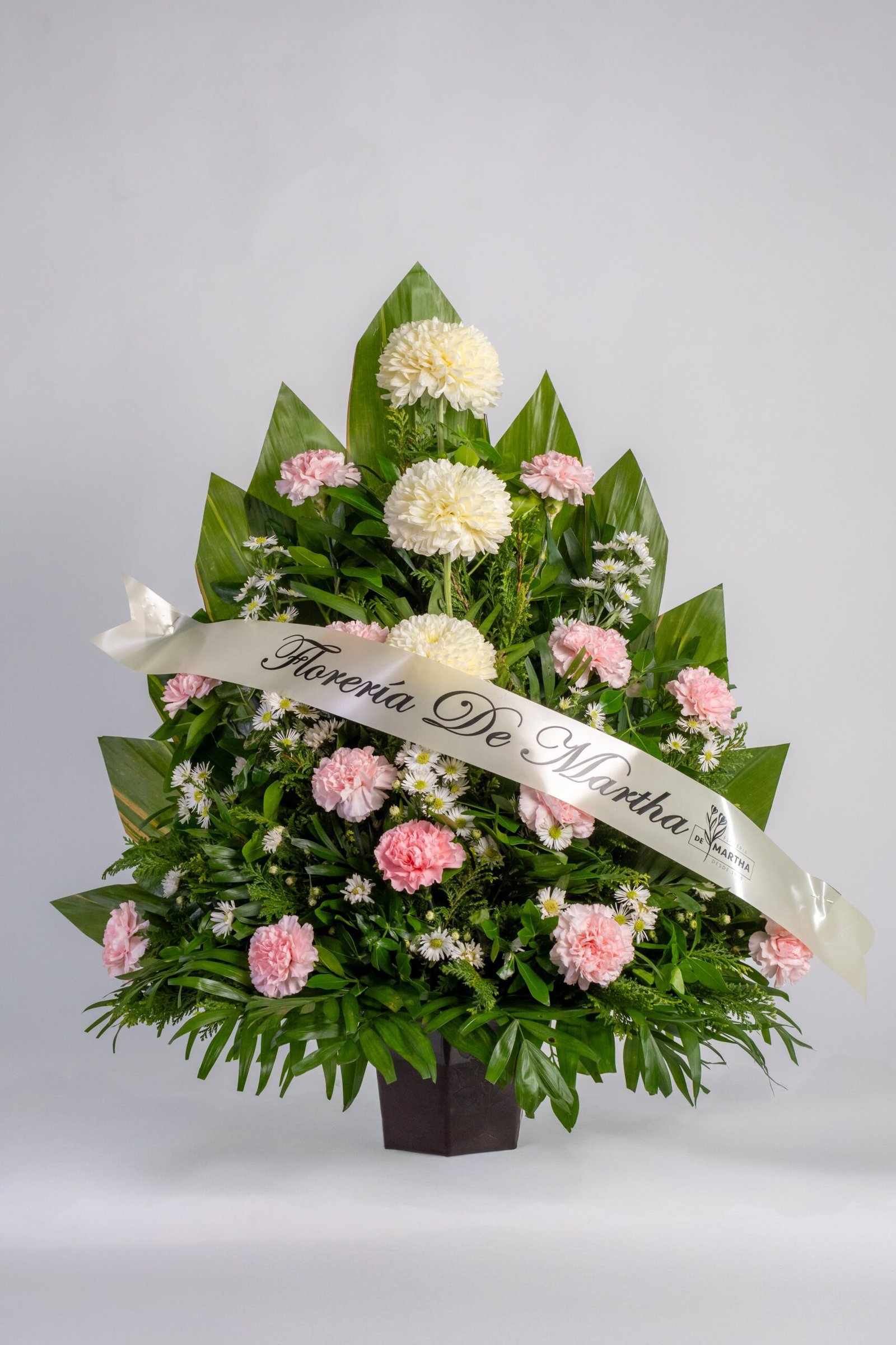Ofrenda Floral de 3 Polar ( Ponpon ) y 12 Claveles rositas