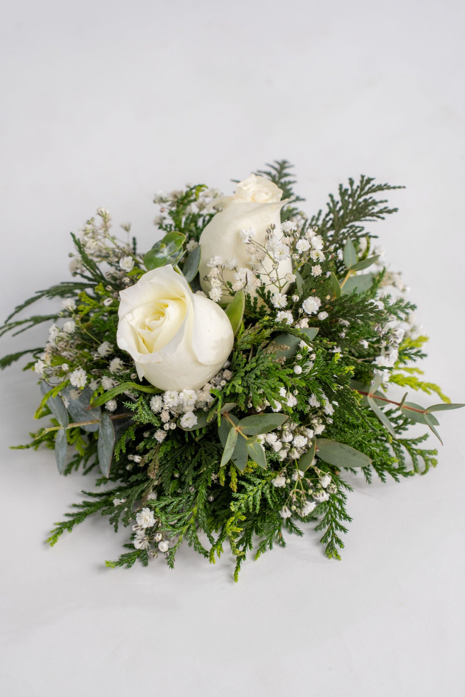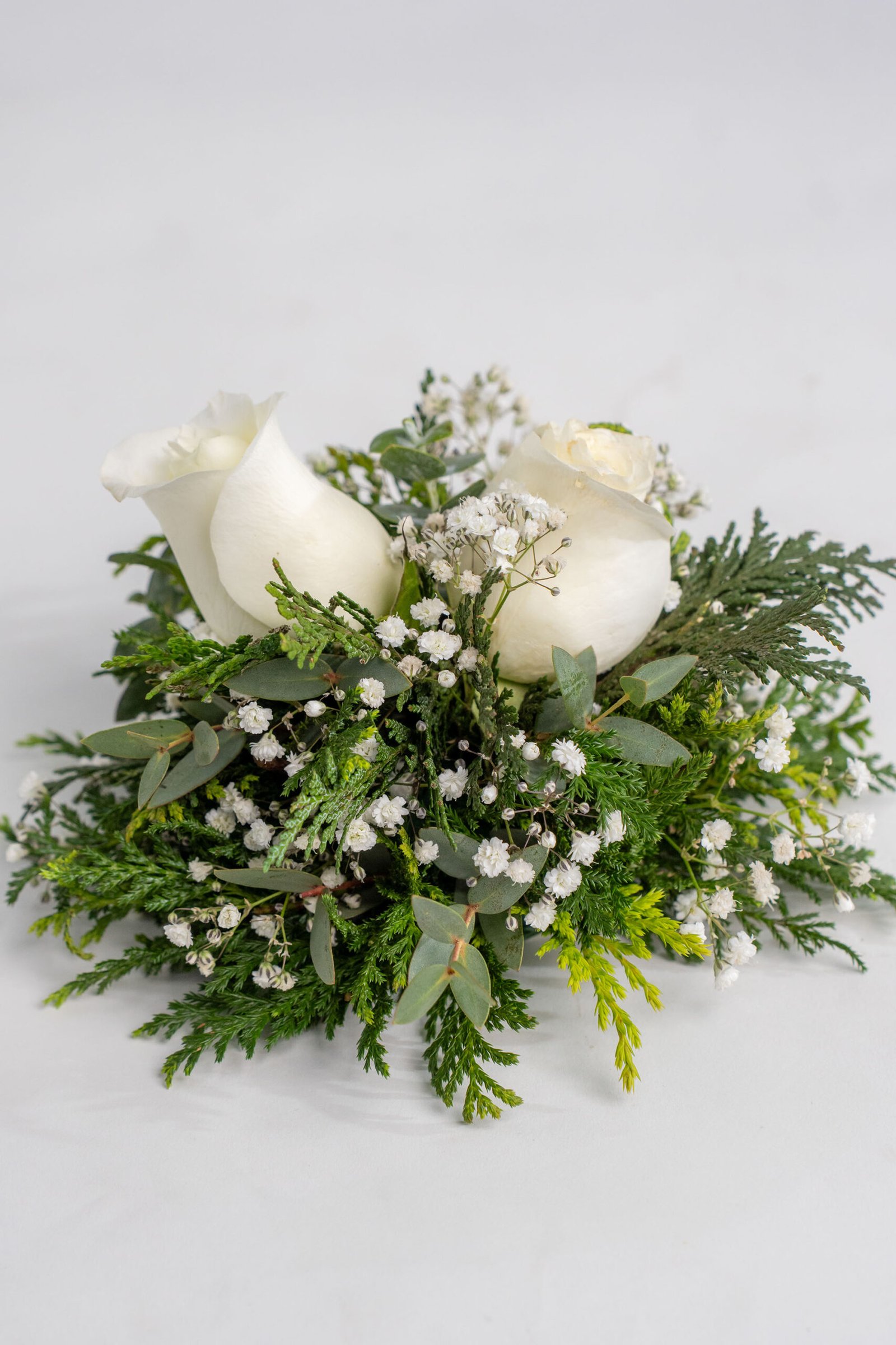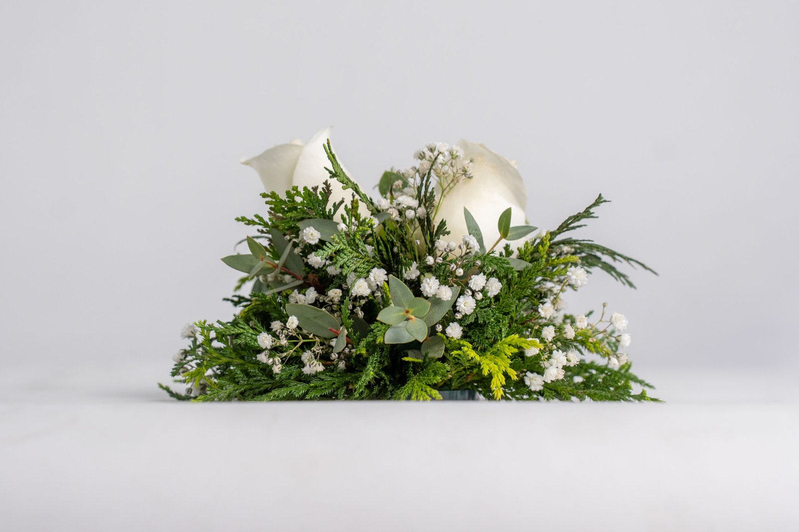 Arreglo 2 rosas blancas, ideal para eventos fúnebres y novenarios