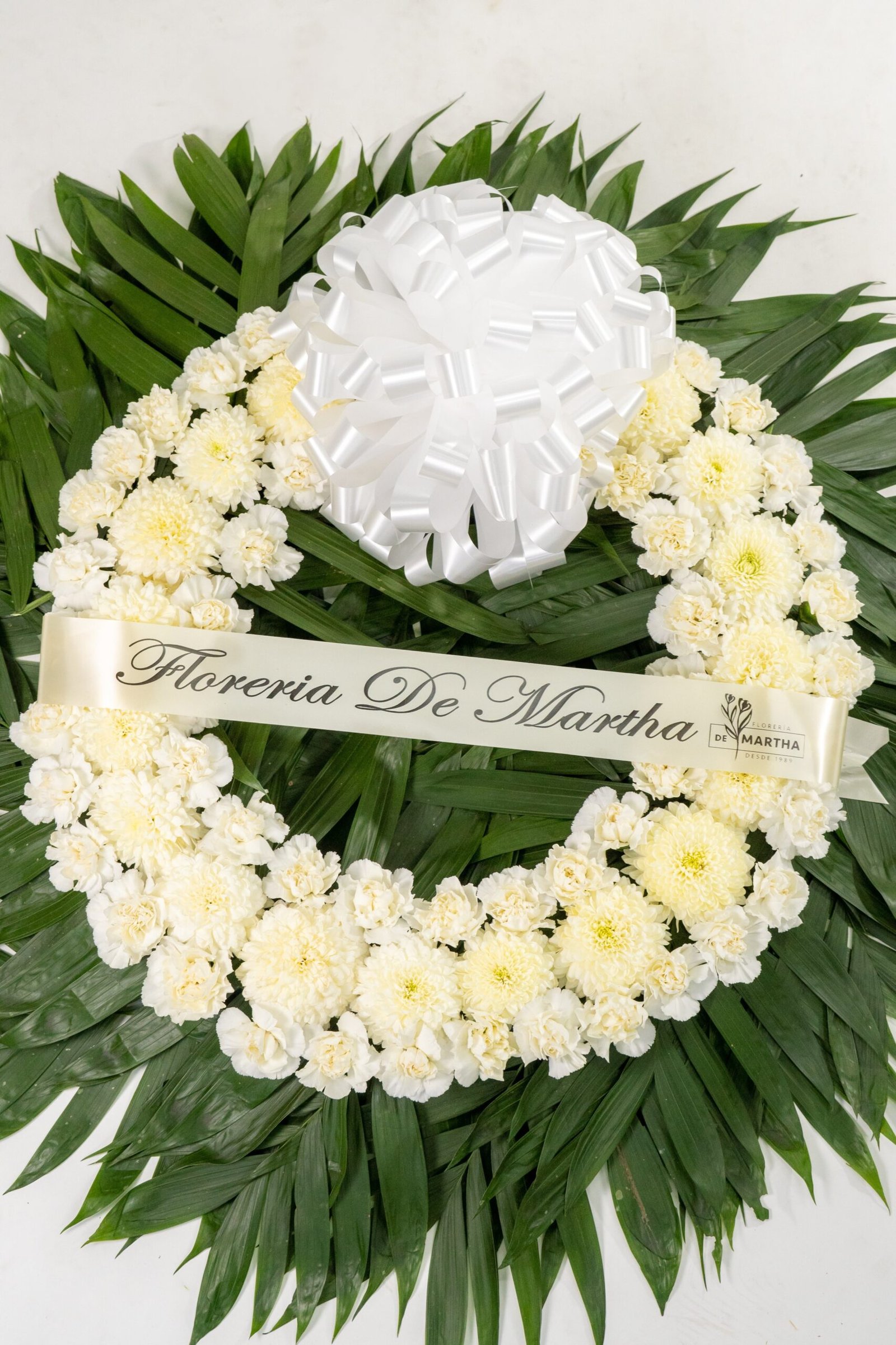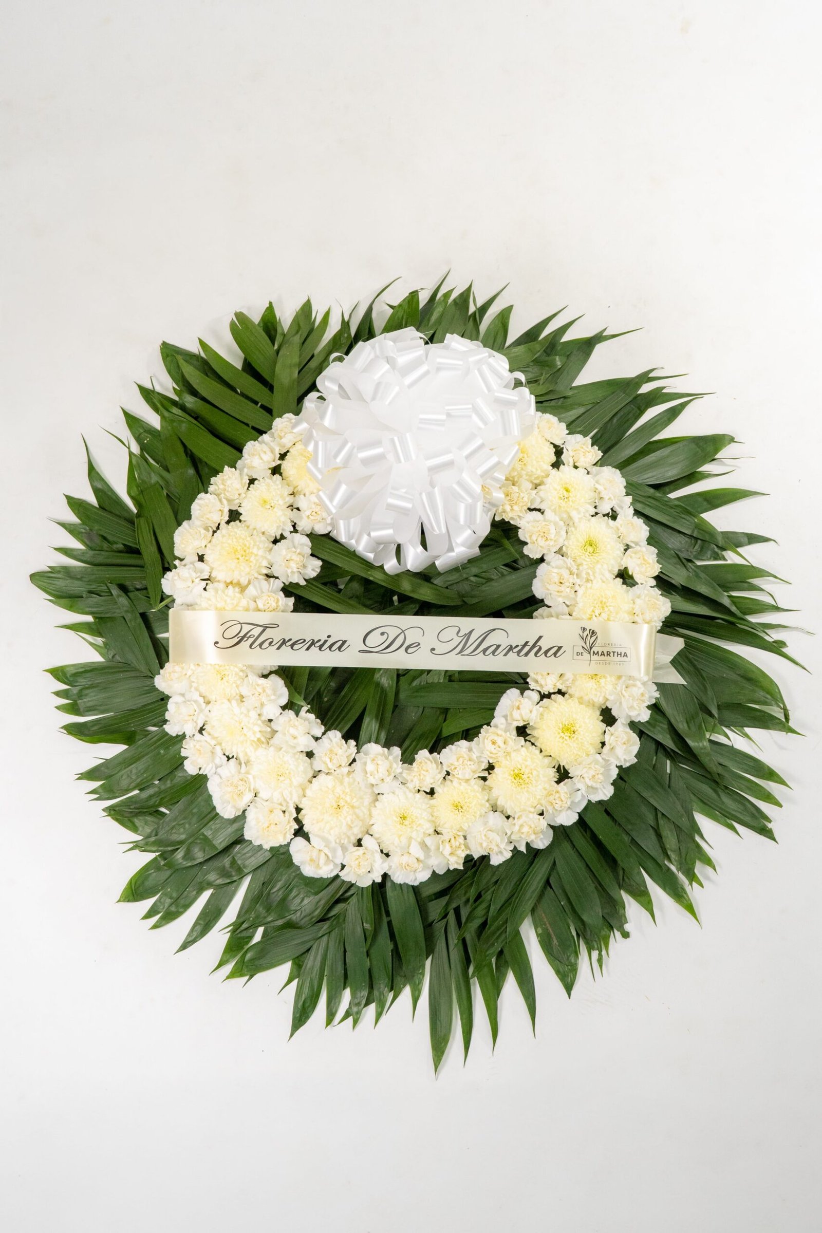 Corona ( 60 cm ) Polar – Clavel Blanco con Moño